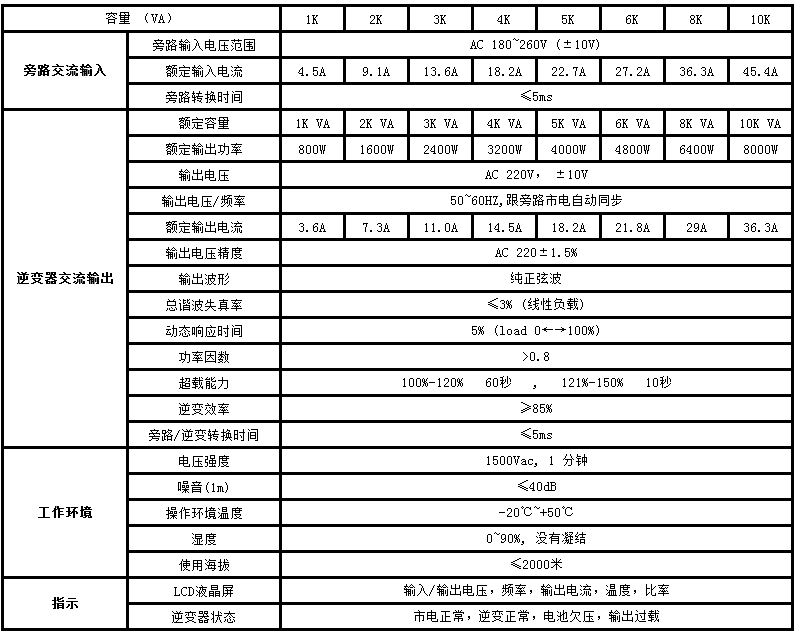 純正弦波輸出,適合所有阻性和感性負(fù)載;