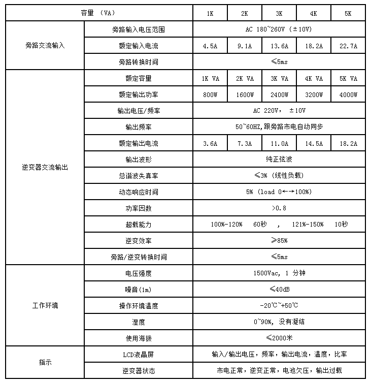 5組無源干接點,分別用于直流輸入故障,交流輸入故障,過載報警,旁路信息,輸出故障(標準配置);