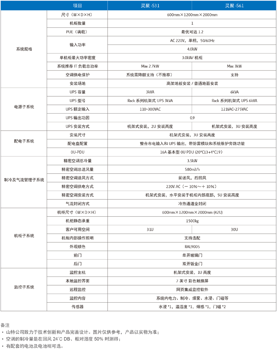 山特靈聚系列將數據中心物理基礎設施產品整合集成為一個系統,包含電源、配電、制冷、機架、監控、布線等子模塊。該方案產品,包括針對小微型分支機構設計單機柜整體解決方案和中小型機房多機柜整體解決方案,為客戶一站式提供了機房物理基礎設施。為客戶提供更可靠的系統兼容性,更靈活合理的配置,更快速的交付周期,更整潔的機房環境,更低的投入和運營成本,及安全可靠節能的系統保障。