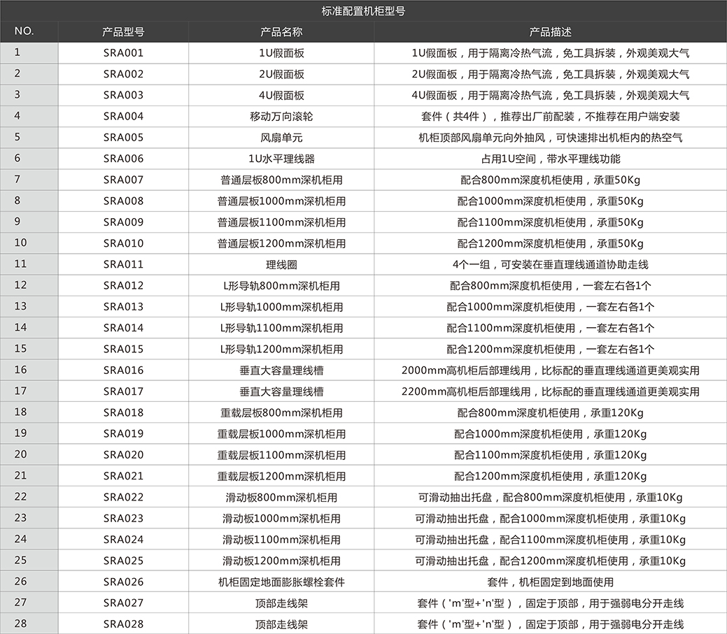 豐富的選配件,用于氣流管理,線纜管理等;